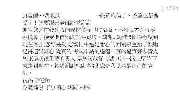 收到同學的來信真的很開心,每次的辛苦,都是下一段成長的經歷與養份,學好英文,與留學這條路,我自己親自走過,我希望能帶領學弟妹們,能夠少走些彎路。
